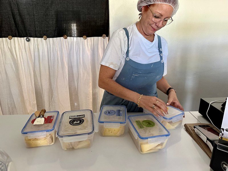 Turns out, she’s the project manager, and she cheerfully filled us in on the story behind the place, the products, and then she asked if we’d like samples. Duh, yes. We tried a bunch of yogurts (Oatmeal! Papaya! Coffee! Pina colada!) and then she pulled out boxes of cheeses.