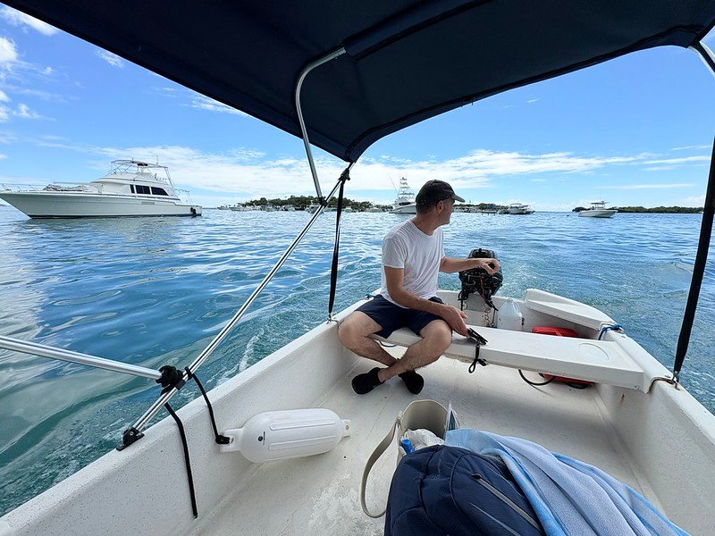 Once we figured out how not to run aground, we became adept at finding nice sandy spots, and then I’d throw the anchor overboard and we’d sit there, bobbing on the water, quietly watching…